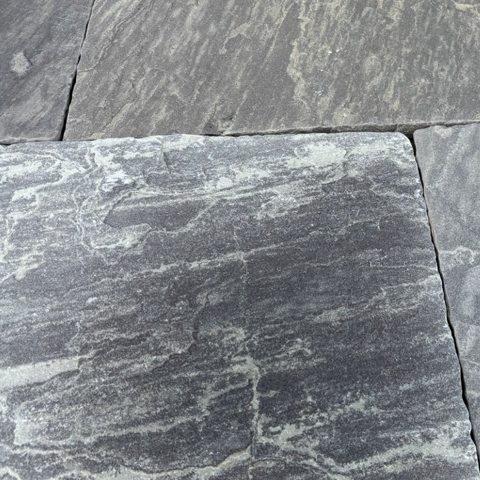 Northwick Antique Graphite Sandstone is a premium natural paving stone featuring rich graphite grey tones and natural colour variation. The heavily riven surface adds texture and slip resistance, while tumbled edges create a beautifully aged, rustic appearance.